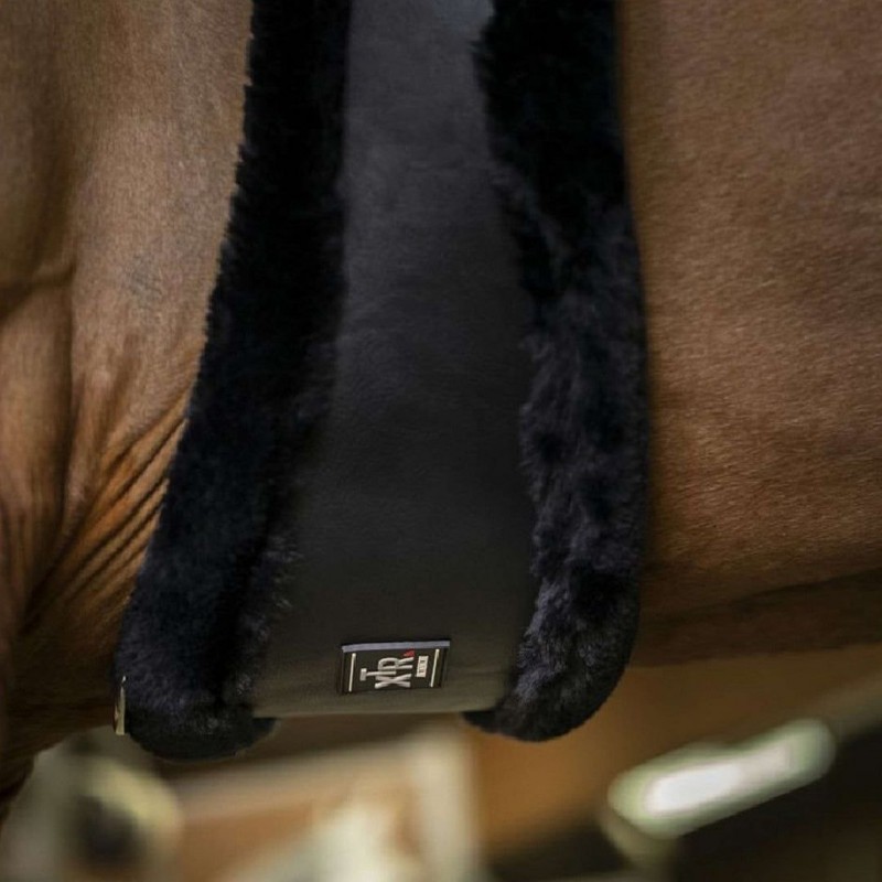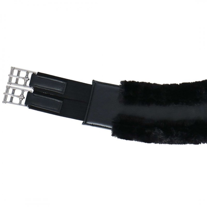 Меховая Синтетическая подпруга из полиуретана, похожего на кожу, с подкладкой из синтетической овчины высокой плотности. Роликовые пряжки из нержавеющей стали на двойных эластичных концах с обеих сторон. Имеет центральное кольцо.